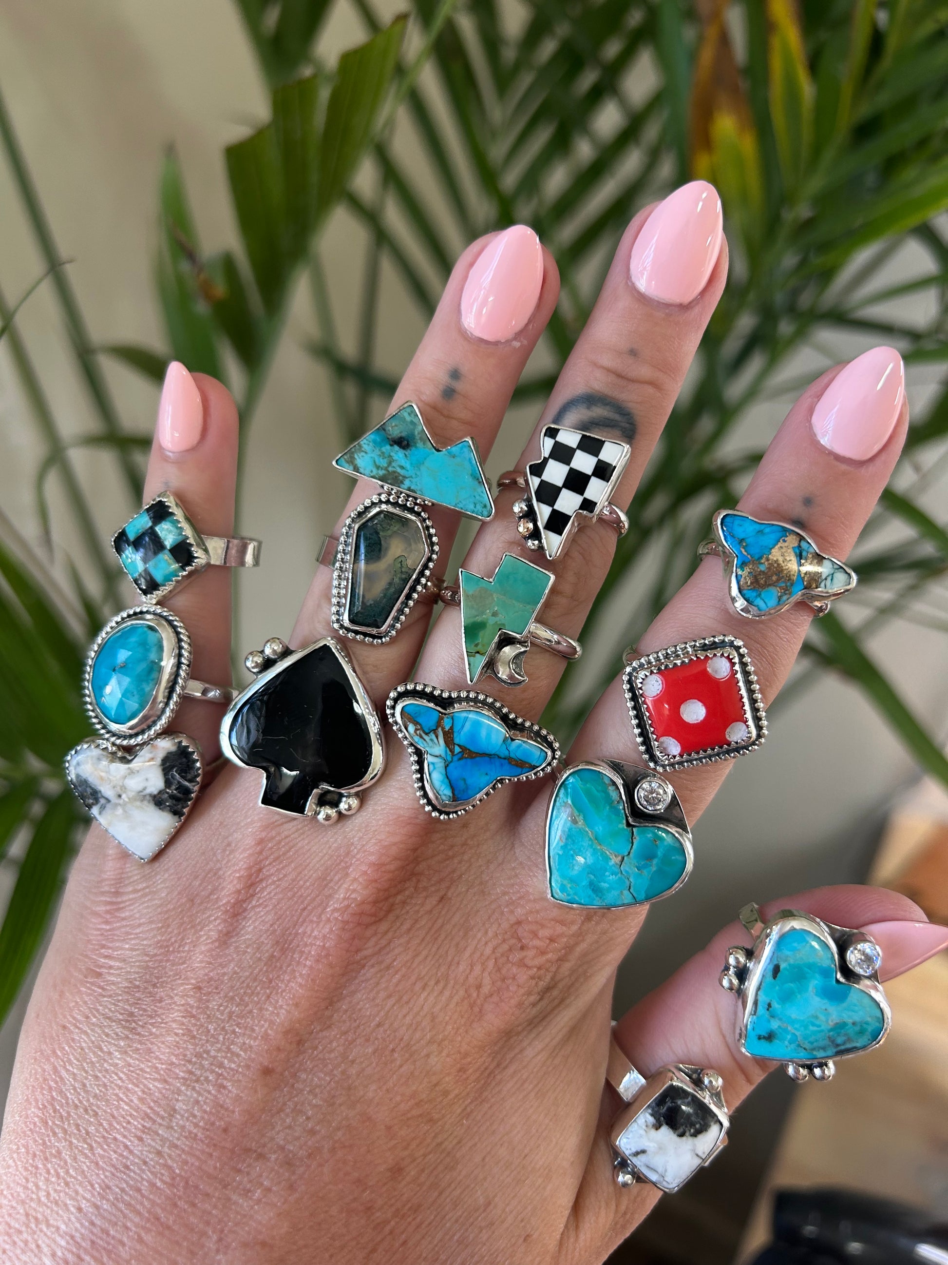 Punchy Rosarita stone set in .925 sterling silver and fine silver made to order in your size